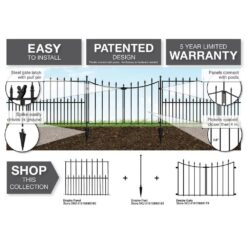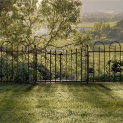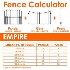 Add style to your yard, garden or walkway with this Empire/Westbrook black garden fence gate. Its durable powder coating helps prevent corrosion so your fence will last for years. Quick and easy to install, it requires no digging or concrete – simply drive the stake post into the ground using a hammer or mallet. Pass the posts through the eyelets to easily join gates and panels together. This elegant, ornamental fence gate is recommended for light-duty uses and is compatible with the Empire/Westbrook fence.