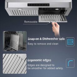 - 900 CFM Airflow Dual Motors: Provide powerful suction for heavy-duty cooking, effectively eliminating smoke and odors.