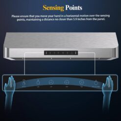 - Multiple Convenient Control Options: Supports touch and gesture control to meet the needs of the whole family. Touch control is simple and convenient, ideal for seniors; gesture control help keep the range hood surface clean by reducing direct contact.