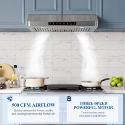 - 900 CFM Airflow Dual Motors: Provide powerful suction for heavy-duty cooking, effectively eliminating smoke and odors.