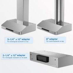- Three Venting Options: Enjoy flexible installation with both top and rear venting options to suit your kitchen layout. This model also includes square and round duct connectors for added versatility.