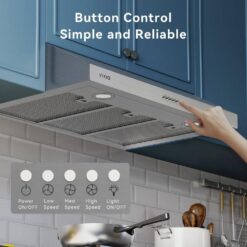 The VIKIO PRO stainless steel under-cabinet range hood seamlessly enhances any kitchen design with its modern style. Its sleek, minimalist appearance adds a contemporary touch to your space, while the central button allows for intuitive control of three fan speeds. The powerful and quiet high-performance motor, paired with two aluminum baffle filters, effectively eliminates smoke, grease, and cooking odors, keeping your kitchen fresh and clean. Combining exceptional performance with energy efficiency, this range hood is a reliable and sustainable choice for your kitchen.