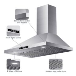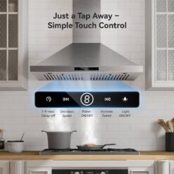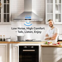 Upgrade your kitchen with our powerful range hood featuring 500 CFM suction, and noise is less than 45 dB for a fresh, peaceful cooking environment. The 5-button touch control with LED display makes it easy to use, while 4000K LED lights brighten your cooking area. With smart delay, easy-to-clean filters, and versatile installation options, it’s the perfect blend of performance and convenience. Plus, enjoy peace of mind with a 10-year warranty and ETL certification for safety.
