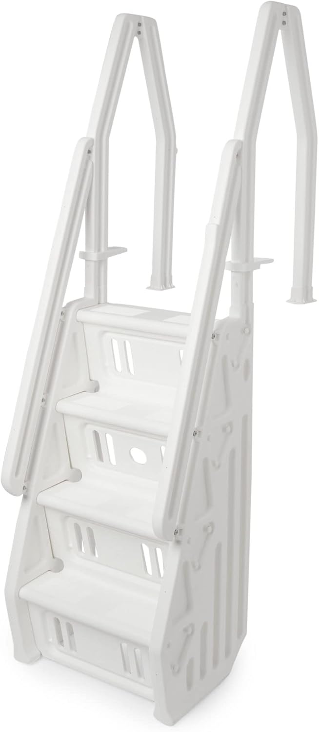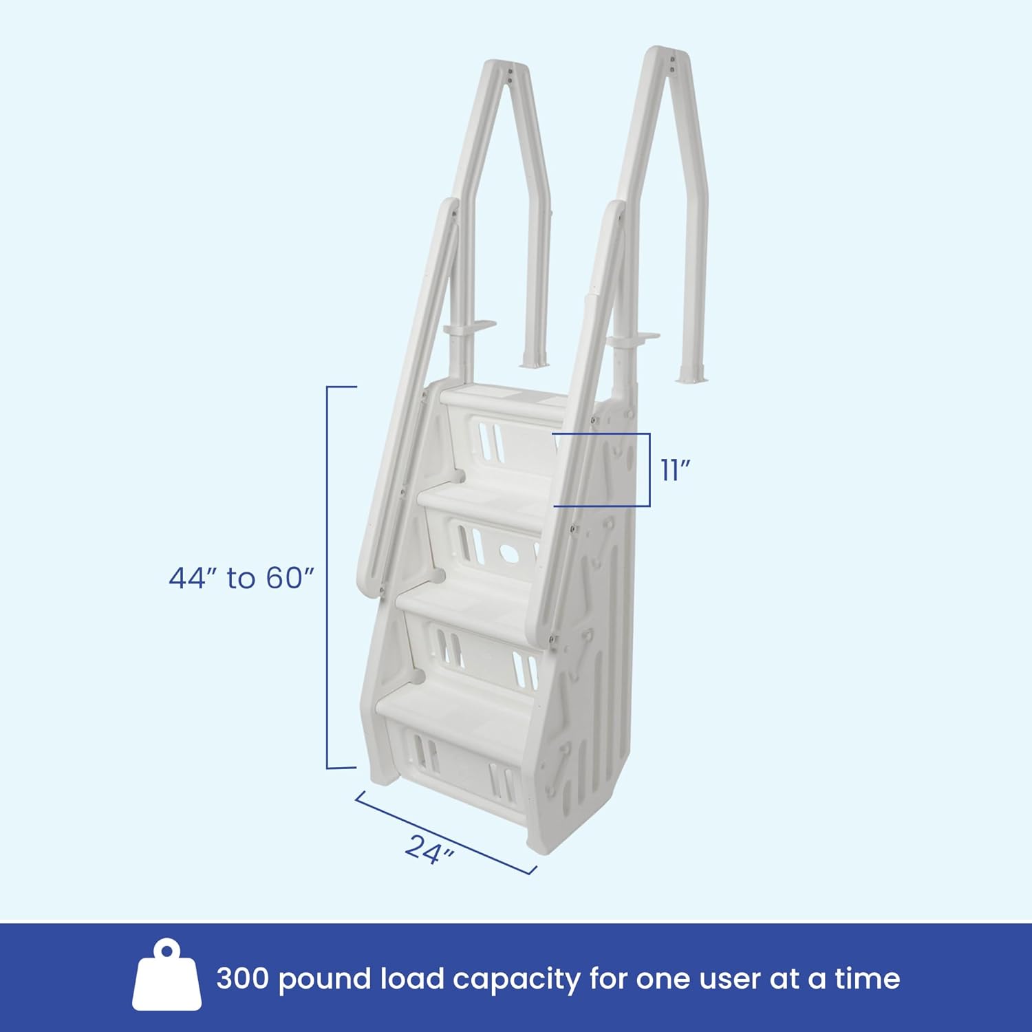 - Reliable Entry & Exit: Stair step in-pool ladder with double handrails offers easy, safe entry and exit into an above-ground pool; Embossed with no diving and no jumping safety reminders