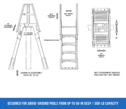 - ANTI-ENTRAPMENT BARRIER – To protect young swimmers, the Premium A-Frame Pool Ladder includes an anti-entrapment barrier to prevent children from swimming between the treads, under the ladder, or behind the ladder.