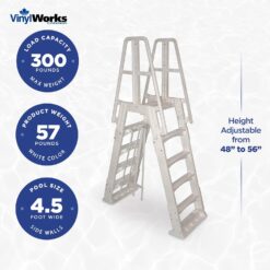 Vinyl Works SLA A-Frame 48 to 56 Inch Adjustable Above Ground Swimming Pool Ladder Entry System with Slide Lock Barrier and Handrails, White