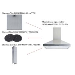 | Features | Charcoal Filter, Dishwasher Safe Metal Mesh Filter, Lighted, Removable Grease Filter(s) | Hardware Color/Finish | Stainless Steel |