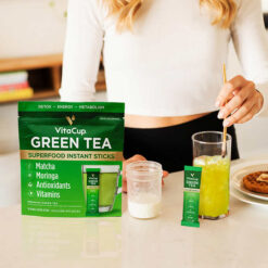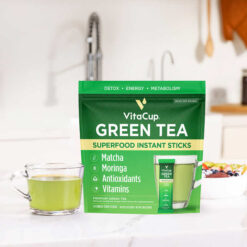 VitaCup Green Tea Instant Sticks are ideal for any tea drinker, especially the wellness warrior on-the-go! Pour one packet with 8 ounces of hot or cold water and stir until completely dissolved (about 10 seconds). You’ll love the energy and detox benefts from a powerhouse blend of antioxidants and natural caffeine.