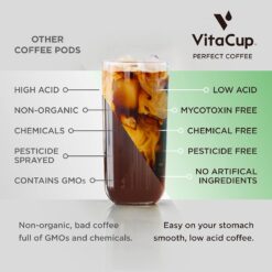 VitaCup Perfect Low Acid Coffee Pods, USDA Organic & Fair Trade, Mycotoxin Free, Dark Roast Guatemala Single Origin, Clean & Pure Recyclable Single Serve Pod compatible w/Keurig K-Cup Brewers,24 CT