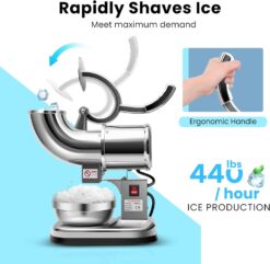 - Sturdy and durable: Dual stainless steel blades help shave ice more completely and easily; Sturdy base offers stable workstation; Vibration and noise minimized