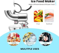 - Electric Dual Blades Ice Crusher: Electric (plug in); Rapidly shaves ice (440 lbs of ice per hour) to meet large demand