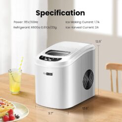 VIVOHOME Electric Portable Compact Countertop Automatic Ice Cube Maker Machine with Hand Scoop and Self Cleaning Function 26lbs/Day White
