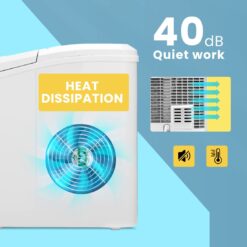 - PREMIUM MATERIAL – The countertop bullet ice maker is made from high-quality ABS material, which is sturdy and has long-lasting durability; The surface treatment of the ice maker provides it with a glossy and smooth finish, enhancing its overall appearance, making it not only a practical helper to your kitchen, but also a stylish addition; Featuring 40 DBS when working, it is super quiet during the ice making process, and will not disturb your daily life