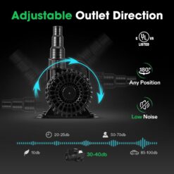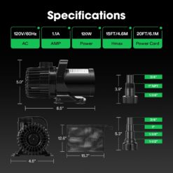 - Energy Saving with Low Noise: The pump utilizes new drive motor technology that is ultra-quiet (30-40db), consumes less power (120W), and has a higher output (2700GPH/10220LPH) than other pumps; It is absolutely ideal for use in ponds