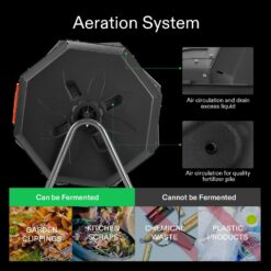 - 360⁰ Tumbling Design: The rotating design prevents you from digging or mixing the pile by hand; And the deep fins on eight panels make it easier to turn the compost bin