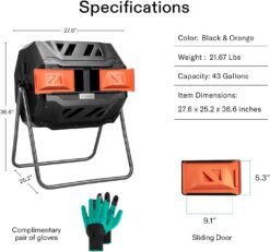VIVOSUN Outdoor Tumbling Composter Dual Rotating Batch Compost Bin, 43 Gallon Orange Door