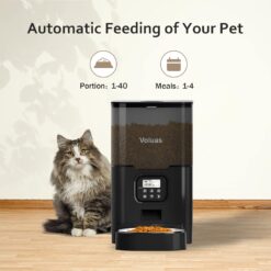 VOLUAS Cat Dry Food Dispenser with Timer, Automatic Cat Feeders with Desiccant Bag, Programmable Portion Size Control 4 Meals Per Day, 10s Voice Recorder, Black Transparent