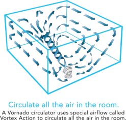 A Vornado circulator creates a unique airflow pattern called Vortex Action to circulate all the air in the room. The air flows fast, cool and constant to create a cooling experience unlike any other.