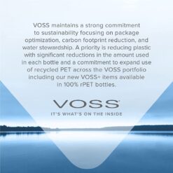 VOSS is a pure natural water that’s bottled at its source from some of the best natural water sources on earth. Confined in an aquifer beneath the earth, VOSS Water is naturally pure giving VOSS Premium water a uniquely pure, clean and refreshing taste. Naturally pure for a crisp, refreshing taste, VOSS drinking water has a low mineral content. With less than 45 parts per million of total dissolved solids, VOSS is recognized as one of the world’s purest bottled waters. Tasting clean yet distinctive, VOSS Premium water is served on the tables of the most discerning consumers, in the rooms of the top hotels, and at the finest restaurants. VOSS plastic bottles have been designed for those on the go. Made with high-grade pet, the BPA-free plastic bottles retain all the elegance of classic glass VOSS Water bottles.