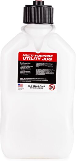 VP Racing 5.5 Gallon Motorsport Racing Liquid Container Utility Jug Can with Contoured Handle, Multipurpose Cap and Rubber Gaskets, White