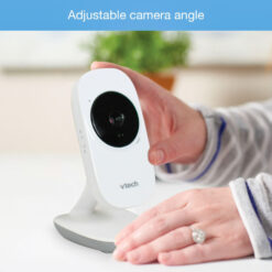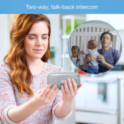 The VTech VM2251 2.4″ Digital Video Baby Monitor makes it easy to keep an eye and ear on your little one from anywhere in the house. The high-resolution color screen on this digital monitor ensures you can see every giggle and smile with full-motion video. Plus, up to 1,000 ft. of range means you can check in from almost anywhere in the house. Extra features include a temperature sensor and a 2-way talk-back intercom that lets you soothe your child without entering the room. Automatic infrared night vision gives you a clear view of the nursery even with the lights out, so you can check in without disturbing your little one.