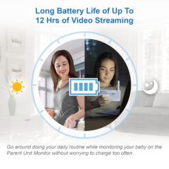 Watch over your little one at home on the 5-inch, 720p High-Definition LCD Parent Unit Display or remotely on your smartphone with the VTech RM5866HD Smart WiFi video baby monitor. View rooms from top to bottom with the 100-degree vertical tilt angle and from side to side with the 360-degree horizontal pan capability. Enhance your baby’s sleep environment with a sound & light profile recommended by the experts at WeeSleep™. Magnify details with the industry’s best 30x times zoom on the mobile app or 24 times on the viewer up to eight times and monitor room temperature and humidity levels directly from the Parent Unit Display. Plus, see your baby as clear as day, even in ultralow light, thanks to the automatic infrared Night Vision. Free professional in-app advice and videos provided by the experts at WeeSleep™ that help assist in sleep and the growth and development of your baby. • Free live remote access via smartphone and tablet to remotely listen, talk-back and view on multiple devices, even outside the home. • High-definition, 5-inch color LCD screen to clearly see every single move right from the parent unit. • 360 degree Pan, tilt and zoom – Achieve 360 degree panoramic viewing and view as many as 100 degrees up and down. Need more detail? The camera zooms up to 10 times with the mobile app or 4 times from the viewer.. • Touch adaptive night light – The 7 color night light automatically adjust brightness for ideal lighting. Touch the light icon to control the night light. • WeeSleep™ sound & light profile – Enhance your baby’s sleep environment with this sound & light profile recommended by the experts at WeeSleep™. • 2K CMOS video sensor – Enjoy the industry best’s zoom experience with 30 times zoom with the mobile app or 24 times from the viewer