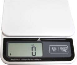 - The digital readout measures in grams or ounces in 1-ounce increments.
