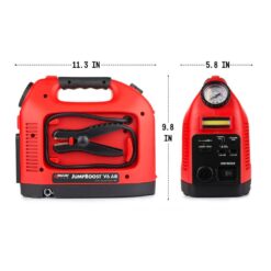 JumpBoost V6 AirIdeally suited for everyday road warriors, the JumpBoost V6 Air is a perfect roadside companion for 4 and 6 cylinder vehicles and motorcycles. Taking up a minimal amount of space, the JumpBoost V6 Air offers an air inflator, 12-Volt DC Socket, 2 USB Power Ports, 10 LED worklight, and a battery booster (jump starting clamps). Handy to have while camping, tailgating, or for emergencies, the JumpBoost V6 Air by Wagan Tech is well suited to power your next adventure.Wagan Tech JumpBoost V6 Air with built-in air compressor is an amazing all-in-one portable unit that provides versatility and power exactly when you need it, whether it’s on the road, at a campsite, at home, etc. With it you can always arrive to your destination safely, plus have your trusted electronics charged and ready for use. Keep the JumpBoost V6 Air in your trunk and have confidence that you are prepared for a roadside emergency. With the JumpBoost V6 Air you can inflate your own tires and jump start your weak or dead vehicle battery – that means never having to wait for a tow truck or flag down an unknown passerby.