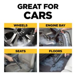 If you’re looking for a quick and easy way to clean your vehicle, look no further! The 905e Steam Cleaner is a great, chemical-free way to make your car look brand new again. The Steam Cleaner uses pressurized, high-temperature steam to loosen and dissolve dirt, cut grease and grime, expel stains and sanitize your surface by killing 99% of bacteria. This steamer is versatile and can also be used indoors for other household cleaning projects. Get the most out of this portable steamer by using the included attachments to steam clean various areas of your vehicle. This steamer is great for use on leather seats, cloth seats, carpeting and floor mats, vinyl dash boards, windows and hard to reach areas like cup holders and glove compartments.