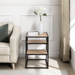 Walker Edison Contemporary Wood and Metal Tiered Side Table, Coastal Oak