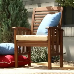 Walker Edison Furniture Company Boardwalk Dark Brown Acacia Outdoor Dining Chairs with White Cushions (Set of 2)