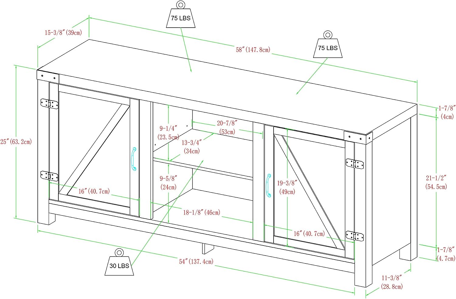 Include our TV stand in your living room to give the area a charming, country feel. Features concealed storage space behind the barn styled side doors with adjustable shelving to fit your media and accessories, while having a mix of rustic and modern farmhouse style. This entertainment center is made of durable, high-grade MDF and can support most TVs up to 65-inches. As a storage console, it will keep your living room looking neat while also giving it a homespun feel.