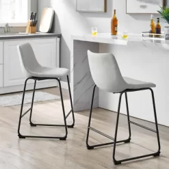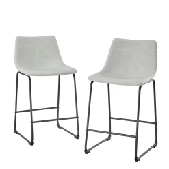 Walker Edison Furniture Company Wasatch 24 in. Grey Low Back Metal Frame Counter Height Bar Stool with Faux Leather Seat (Set of 2)