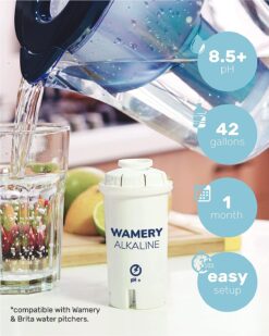 WAMERY Certified Alkaline Water Filter Replacement Fits Brita and Wamery Pitcher Cartridges 3-Pack, Increases Water pH.