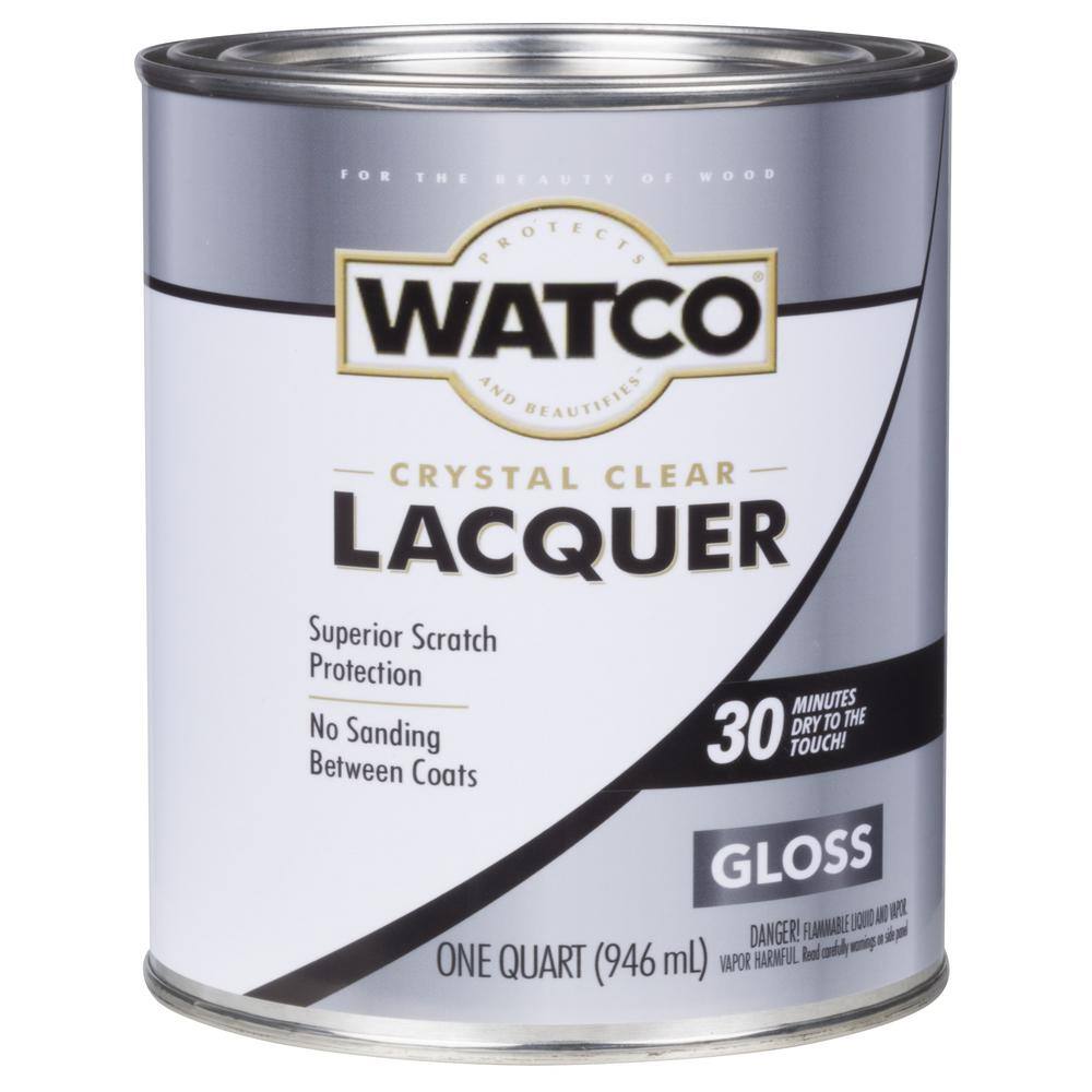 Watco 1 qt. Clear Gloss Lacquer Wood Finish (6-Pack) creates a durable finish on interior wood. Watco Brushing Lacquer fills in pores on wood eliminating the need for wood fillers. Provides a high clarity, clear protective finish on surfaces.