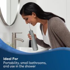 Directions: 1. Charge the Waterpik Cordless Pulse water flosser before using it for the first time. 2. Fill the reservoir with warm water. 3. Place the tip in your mouth. 4. Turn the unit on. 5. Select a pressure setting. 6. Glide the tip along your gumline and between teeth. 7. After use, clean the tip and reservoir. 8. The product is waterproof and can be used in the shower. 9. Charge the device using the USB-C to USB-A charging cable.