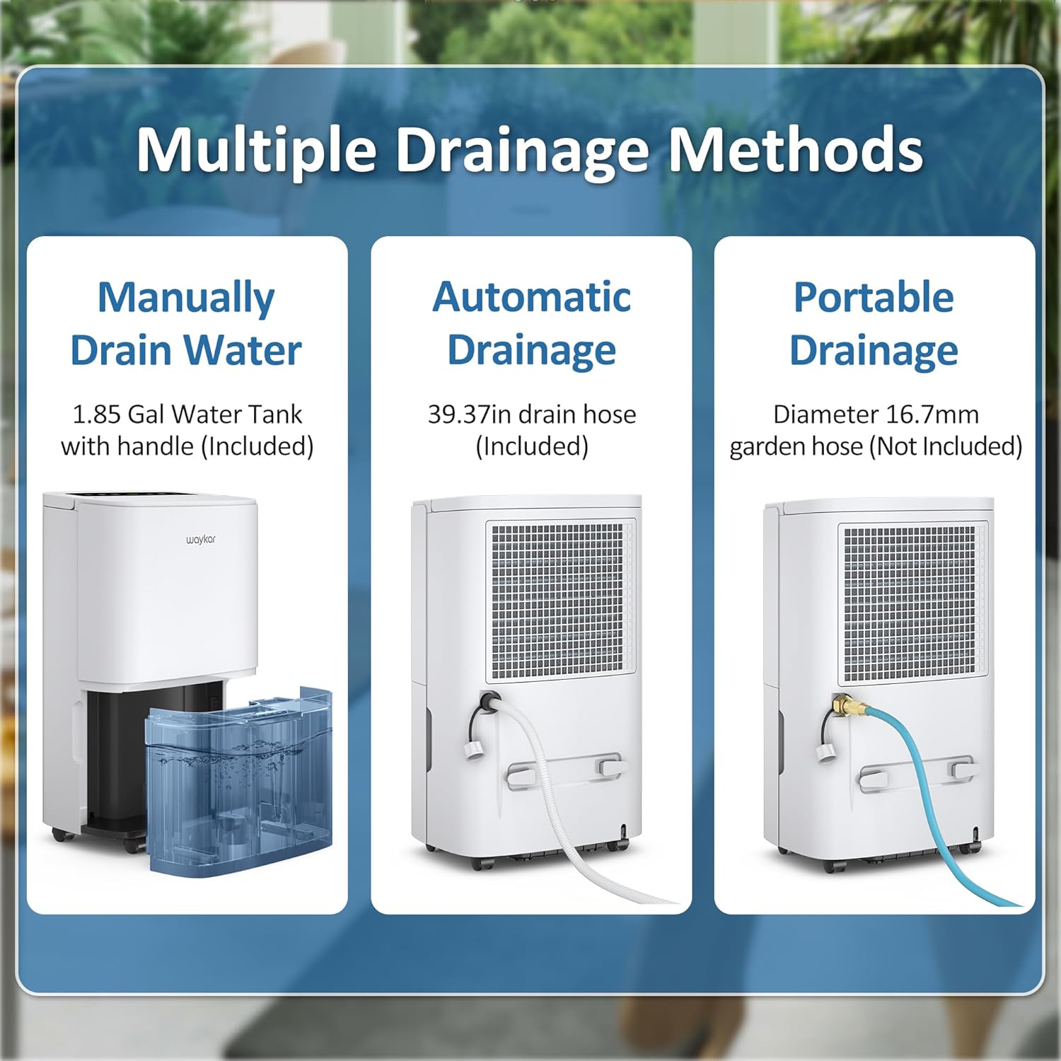Included Components | Waykar 150 Pint Dehumidifier x 1;39.37″ Drain hose x 1;User manual x 1 |