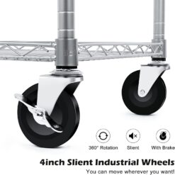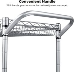 - 360° Silent Casters: The 3 tier rolling cart is designed with 4 silent casters; it transports heavy loads swiftly and smoothly. include 2 fixed locks wheels can hold the heavy duty utility cart firmly in place for added stability.