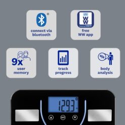 - Body Analysis Bluetooth Scale: This scale tracks your weight and delivers a body composition analysis that keeps you on track to reach your goals; Data syncs to free scale app and also to the WW app (for members only); 9 user memory