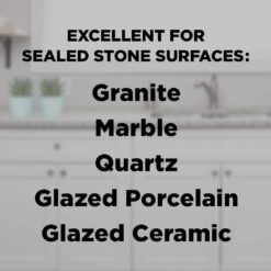 - Multi-Use – Superior performace on countertops, floors, shower stalls, kitchen sinks, bathroom sinks, tubs, floors & other hard, non-porous surfaces Surface Safe – For Non-porous Sealed Granite, Sealed Marble, Sealed