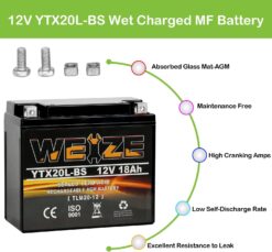 Weize YTX20L-BS High Performance Power Sports- Maintenance Free – Sealed AGM Battery ETX20L BS For Motorcycle ATV UTV snowmobile