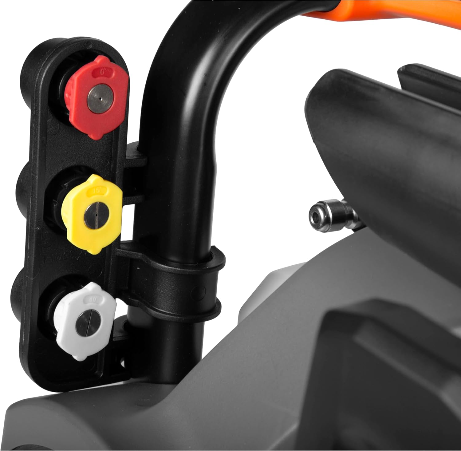 - Features three nozzles (0°, 15°, and 40°), a 20-foot reinforced hose, a 35-foot power cord, a water filter, and a two-year warranty