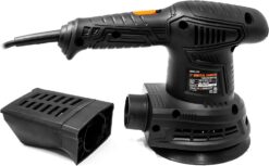 - Includes an 80-grit 5-inch sanding disc, a dust collection box, and a two-year warranty
