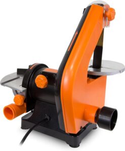 - Two-in-one sanding machine includes both a 1-by-30 inch belt and a 5-inch disc
