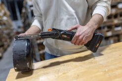 - Tool-free belt installation makes for quick and easy belt changes during the job
