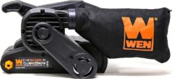 Remember when you needed a versatile and reliable sander? Smooth out surfaces, deburr jagged edges, strip paint, and more with the WEN 3-by-18-Inch Belt Sander. Our 6.3-amp motor runs the included 80-grit sanding belt up to 850 feet per minute, making easy work out of even the toughest surfaces. The lightweight 6.3-pound body makes for a reliable and ergonomic handheld belt sander. The front roller extends past the top edge of the housing, allowing the belt to reach and sand even the tightest of corners. The lock-on power switch keeps your sander sanding without having to keep any buttons held down. The onboard 1-1/4-inch dust port (with 1-7/16-inch outer diameter) can be attached to either the dust hose of your choice or the included dust bag. And because it’s a WEN product, your portable belt sander comes backed by a two-year warranty, a stocked inventory of replacement parts, and a friendly customer helpline, all to make sure you remember WEN.