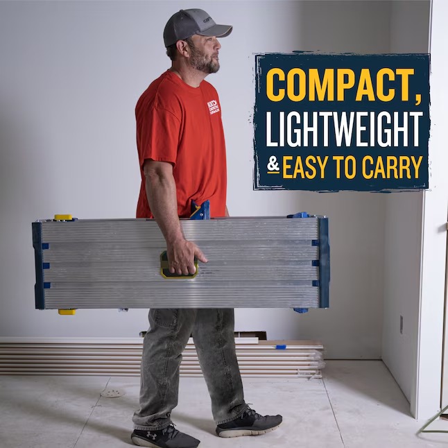 - The compact size, light weight, and EASY-GRAB handles make it simple to carry your work platform quickly and safely