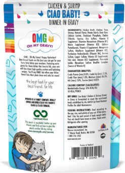 Weruva B.F.F. OMG – Best Feline Friend Oh My Gravy!, Ciao Baby! with Chicken & Shrimp in Gravy Cat Food, 2.8oz Pouch (Pack of 12)