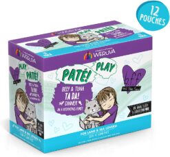 Weruva Wet Cat Food B.F.F. Play – Best Feline Friend Paté Lovers, Aw Yeah!, Beef & Tuna Ta Da! with Beef & Tuna, 3oz Pouch (Pack of 12)