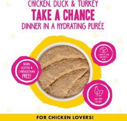 - Chicken, Duck & Turkey Take a Chance (5.5oz Can, Pack of 8) Featuring cage-free chicken, duck, and turkey gently pureed into a creamy and delicious paté!